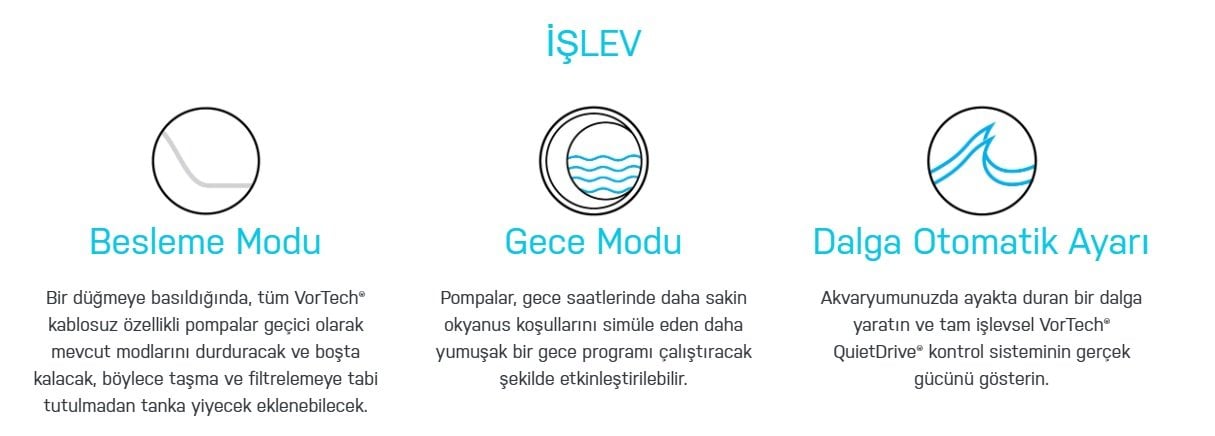VorTech Pompalar, akvaristler tarafından deniz akvaryumlarında akış sağlamak için altın standart olacak şekilde tasarlanmıştır. Geniş ancak yumuşak akış söz konusu olduğunda, VorTech tasarımı eşsizdir.